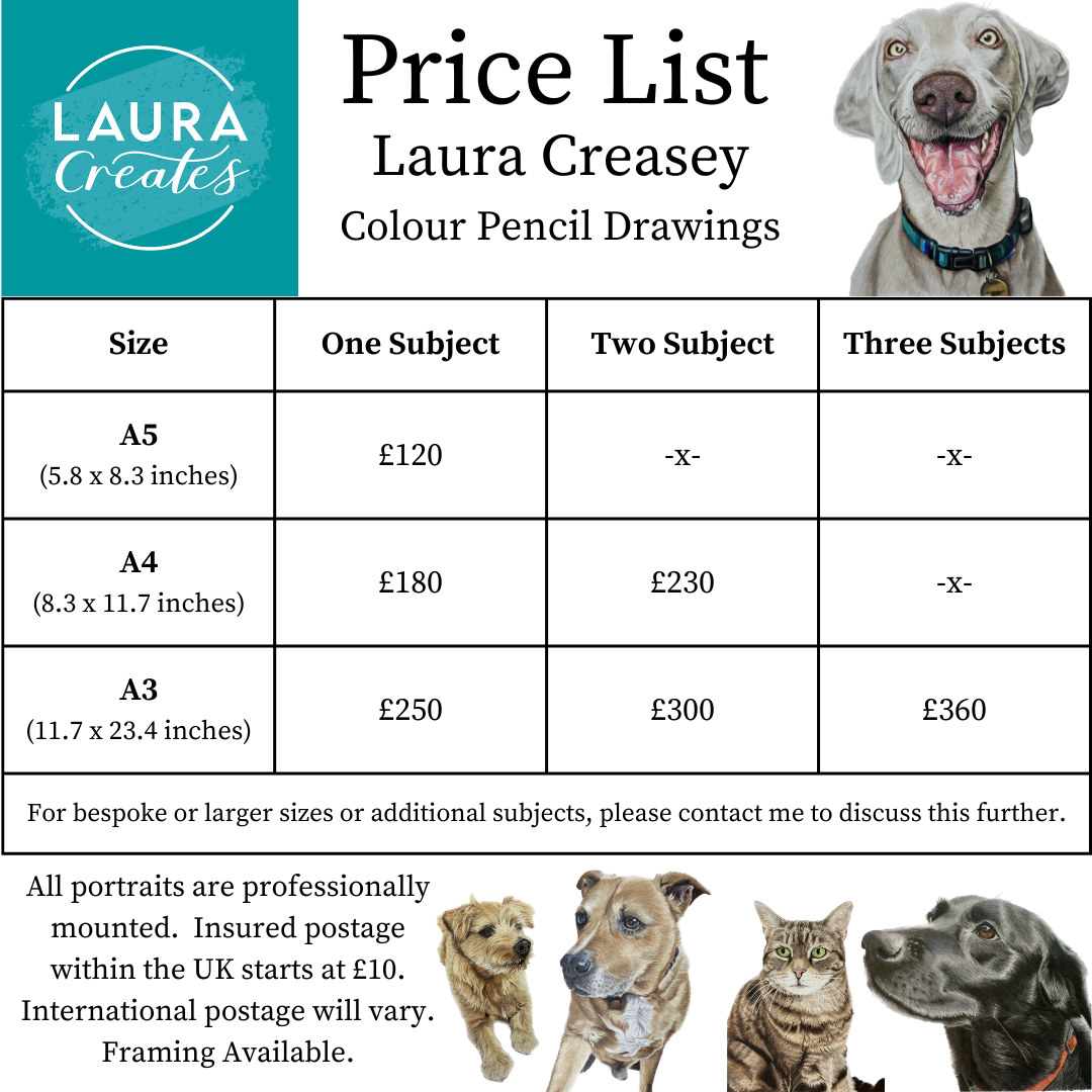 Mounting and Framing: All my commissions come mounted in a white mount as standard. If you would like your piece framed, this can be arranged at an additional cost. I will discuss this with you prior to booking your portrait.