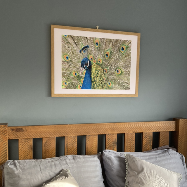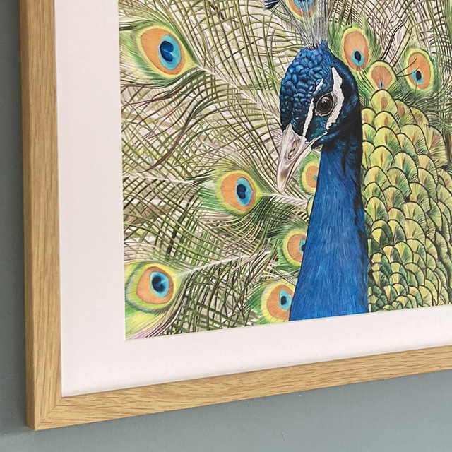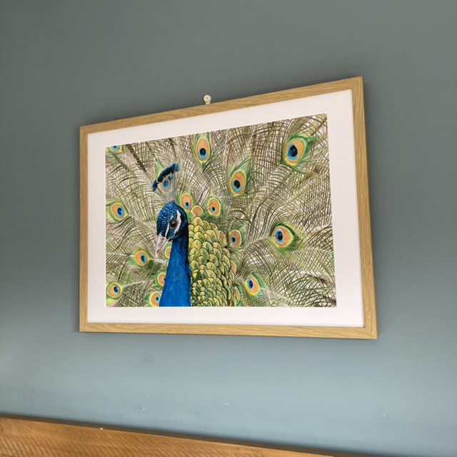 Admire the beauty of the peacock as it stands out with its remarkable striking colours. Perfect for any art lover looking to add a unique piece to their collection.